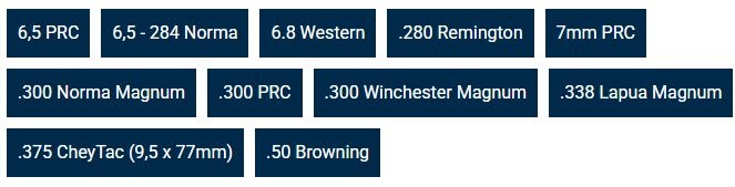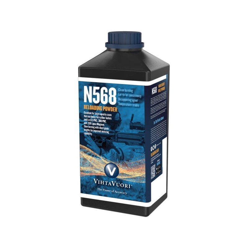 La Vihtavuori N568 est le choix idéal pour les cartouches de grande capacité les plus populaires d'aujourd'hui, notamment la 6,5 PRC, la .300 PRC, la .338 Lapua Magnum et un large choix de cartouches magnum classiques à ceinture, telles que la 7 mm Remington Magnum et la .300 Winchester Magnum.