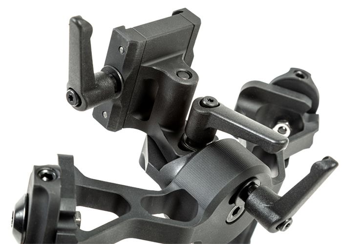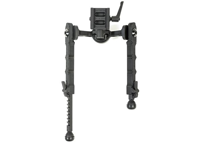 Ce bipied est fabriqué en alliage d'aluminium 6061 T6, léger et robuste, avec une finition anodisée noire mate.
