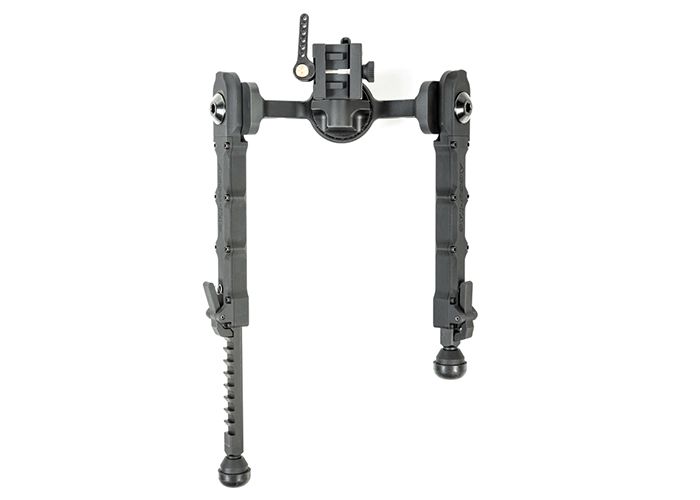 Ce bipied est fabriqué en alliage d'aluminium 6061 T6, léger et robuste, avec une finition anodisée noire mate.