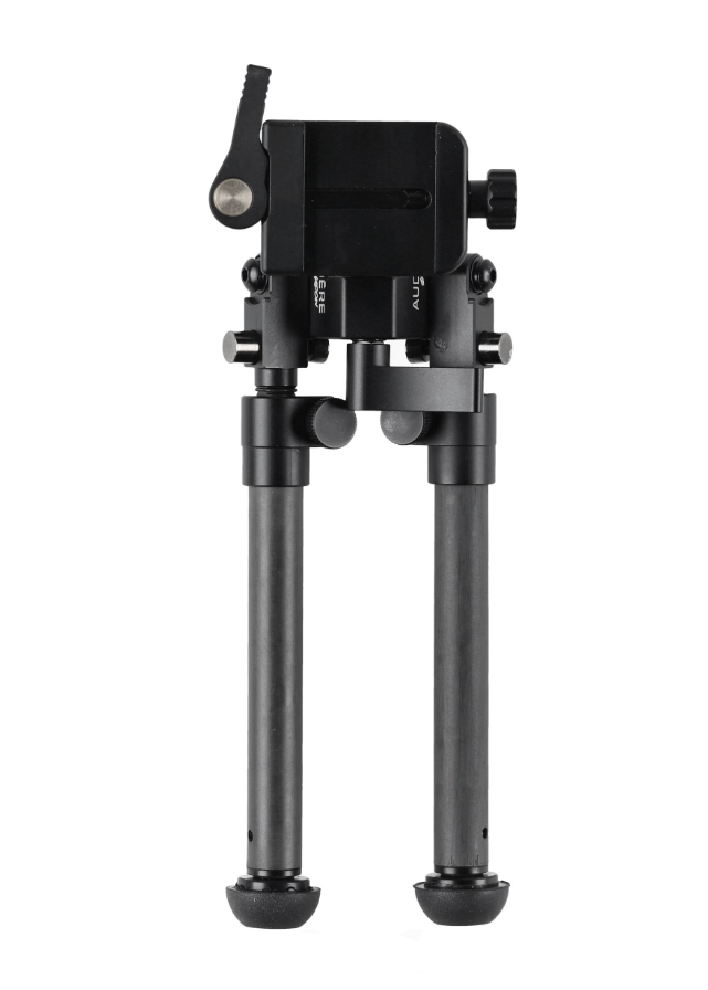Le bipied Audere Shadow est conçu pour le tir sportif. Ses pieds en fibre de carbone et son corps en aluminium lui confèrent un poids plume de seulement 300 grammes. Sa hauteur est réglable de 195 mm à 245 mm, avec quatre points de réglage tous les 20 mm. Les pieds sont réglables indépendamment sur cinq positions à 45° et sont fournis avec des embouts interchangeables en caoutchouc et en acier inoxydable. Le levier extensible permet un réglage de l'inclinaison sur 40°. Les commandes, positionnées vers l'arrière, permettent au tireur de les utiliser facilement sans modifier sa position.