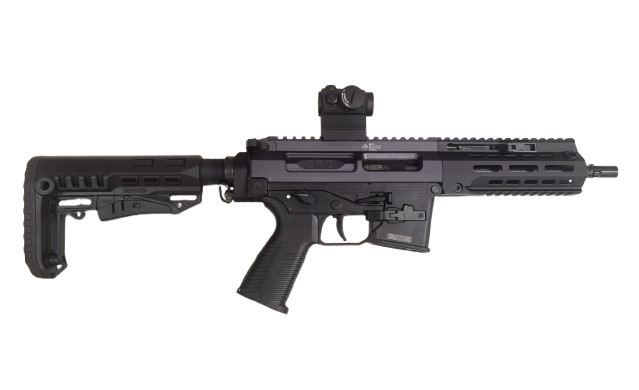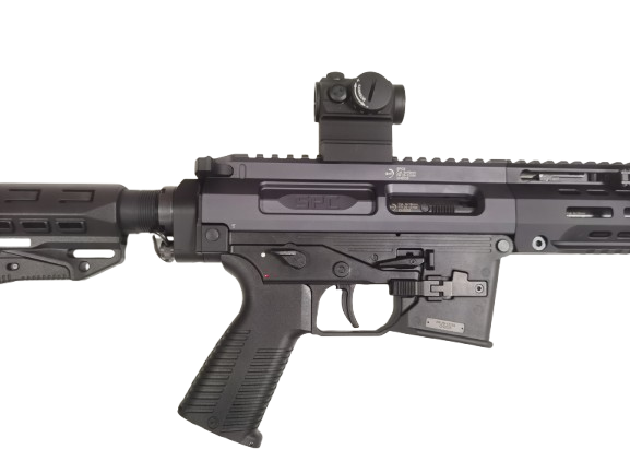 La SPC9 est une nouvelle carabine 9 mm qui intègre de nombreuses caractéristiques des modèles B&T APC9, MP5 et autres armes AR courantes. Elle offre une excellente maniabilité, une précision et une sécurité optimales, ainsi qu'un très faible recul grâce à son amortisseur hydraulique innovant.
