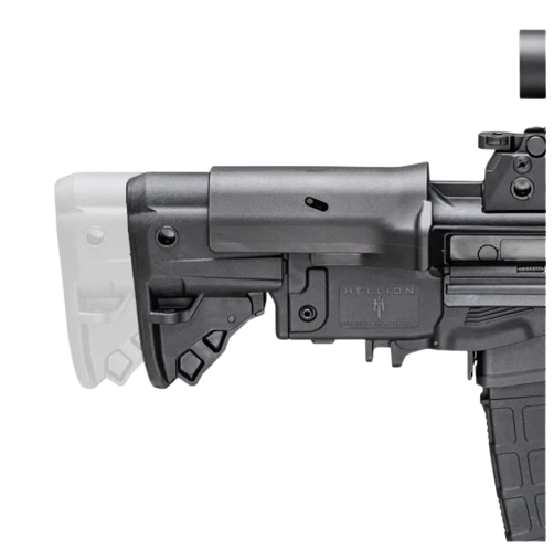 Le Hellion est totalement ambidextre, que ce soit dans les contrôles ou dans l'éjection. Il fonctionne par piston, plus lourd qu'un emprunt de gas d'ar15 mais élimine les résidus autour de la culasse. Les chargeurs d'origine sont propre au Hellion/VHS2 mais il y a un puit de chargeur de fournis pour permettre l'utilisation de chargeur type AR15.