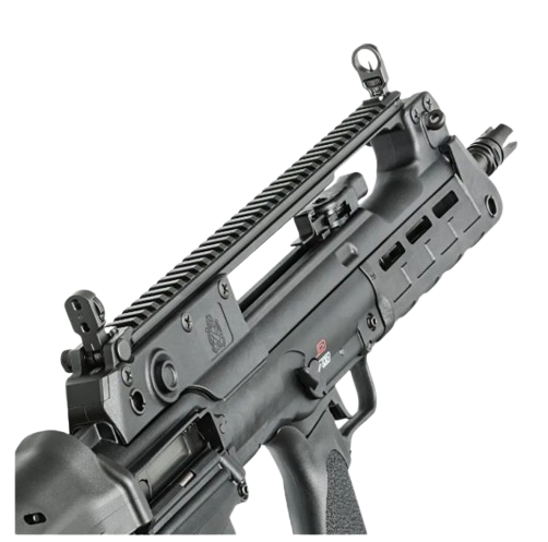 - Rail Picatinny sur tout le dessus de l'arme avec organes de visée intégrés,