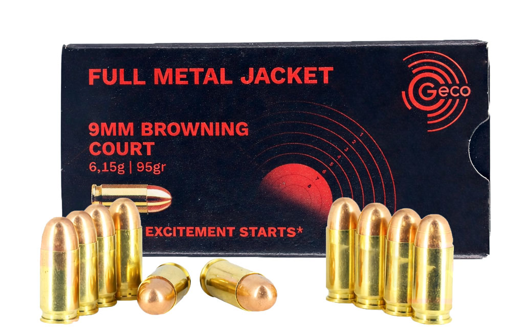 Le calibre 9mm Browning Court, aussi connu sous le nom .380 Auto, est apprécié pour sa douceur au tir et son comportement stable. Ces cartouches GECO utilisent une ogive FMJ de 95 grains pour un vol tendu et prévisible jusqu’à 50 mètres.