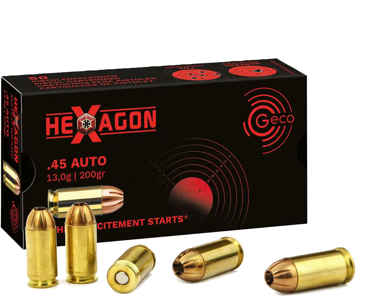 - 50 cartouches GECO Hexagon .45 ACP