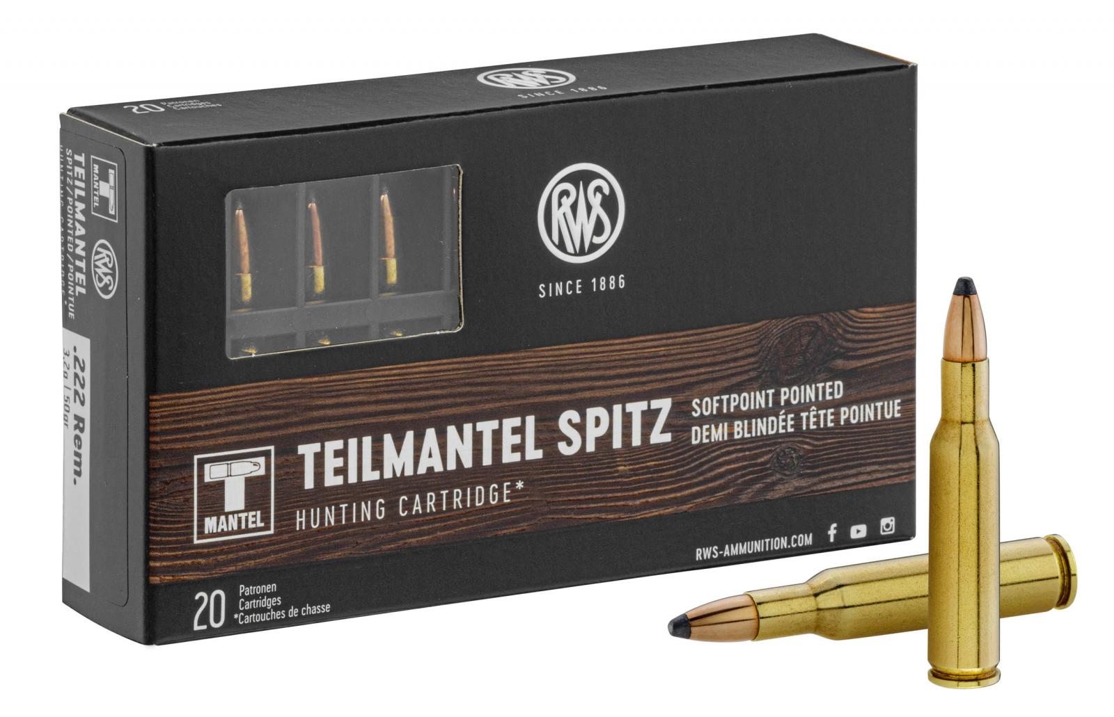- 20 cartouches RWS calibre .222 Remington T-Mantel SP