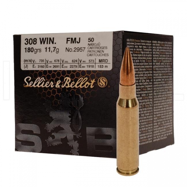 - 50 cartouches Sellier & Bellot calibre .308 Winchester FMJ 180 gr