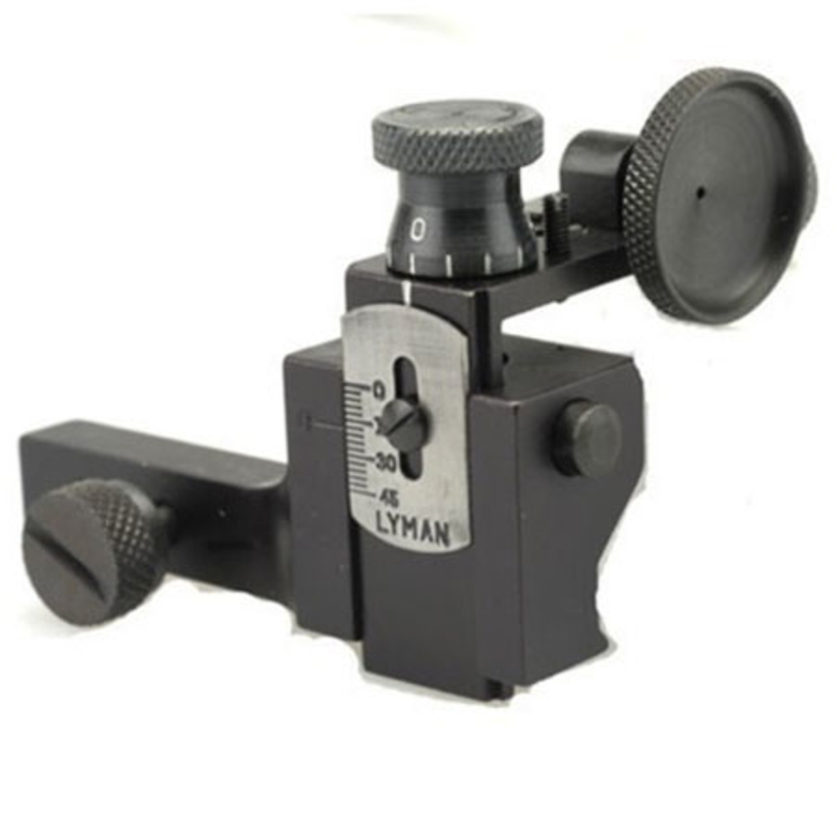 Le viseur Lyman 90 MJT est conçu pour être monté sur les blocs de montage Lyman et autres supports de type cible. Il est doté d'un cran d'arrêt audible, de molettes de réglage graduées au quart de minute et de flèches pour l'élévation et la dérive. Les échelles zéro réglables et la vis de butée d'élévation permettent un retour instantané au point zéro préréglé. Le système de démontage rapide permet de retirer la glissière. L'élévation est réglable de 26,9 mm à 39,6 mm au-dessus de l'axe du canon. Le disque cible antireflet de 22,2 mm de diamètre possède une ouverture de 1 mm. Le corps en aluminium usiné et anodisé dur noir, associé aux molettes de réglage et aux billes de cran d'arrêt en acier bleui, garantit une longue durée de vie.