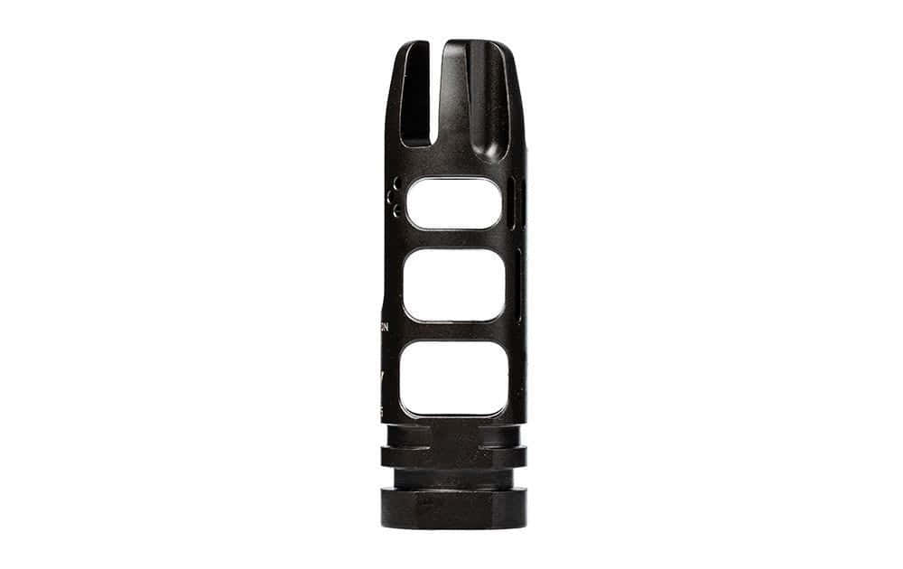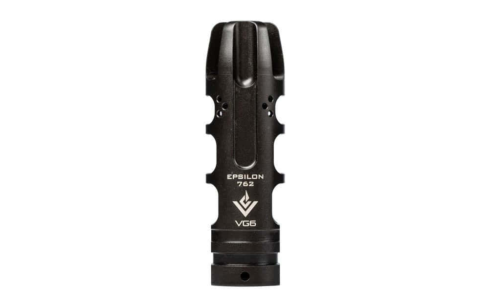 Le frein de bouche VG6 Precision EPSILON 762 est un dispositif haute performance conçu pour éliminer le recul. Compatible avec la plupart des fusils chambrés en calibre .30, ce système hybride combine compensation du recul et réduction de la signature lumineuse. Développé dans le but d'améliorer le contrôle du recul, l'EPSILON 762 bénéficie d'une nouvelle chambre optimisée qui améliore le flux de gaz et réduit sensiblement le recul perçu par rapport aux versions précédentes. Nous avons également optimisé son poids grâce à la conception de la chambre et à des rainures profilées sur toute sa longueur.