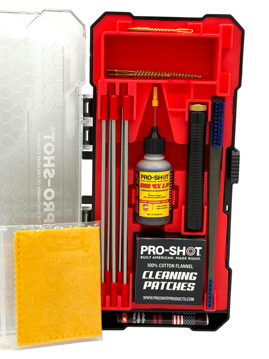 Conçu pour les armes de petit calibre comme les carabines et pistolets à air comprimé en 4.5 mm / .177, ce kit Pro-Shot made in USA offre une solution complète et durable pour le nettoyage des canons rayés. Il allie précision, compatibilité et simplicité d’usage dans un format compact et bien organisé.