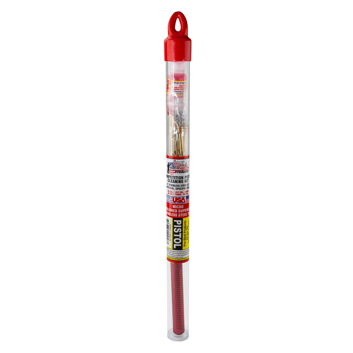 Le kit de nettoyage PRO SHOT Competition Series pour armes de poing du calibre .38 à .45 s’adresse aux tireurs recherchant un entretien efficace, précis et respectueux du canon. Développé aux États-Unis, ce kit mise sur une baguette en acier inox micro-poli avec poignée pivotante, associée à des accessoires parfaitement dimensionnés pour couvrir plusieurs calibres courants. Un ensemble cohérent, idéal pour le stand comme pour l’établi.