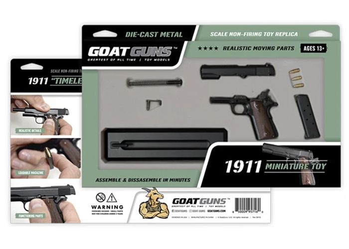 Cette réplique miniature du Mini 1911 Black de Goat Guns pèse 170 grammes et mesure 10 cm de long.