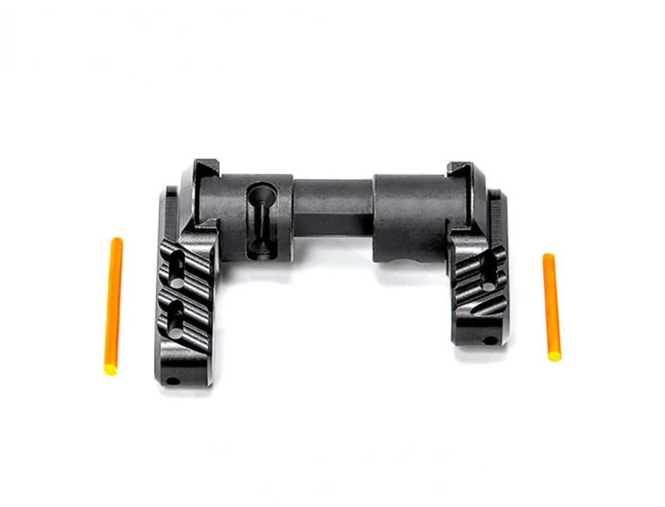 Ce sélecteur de sécurité haut de gamme pour AR-15 est entièrement compatible avec tous les boîtiers de culasse inférieurs et les détentes AR connus fonctionnant avec le sélecteur de sécurité semi-automatique AR-15 « Mil-Spec ». L'utilisateur n'a plus besoin de modifier la course du levier de sécurité sur son boîtier de culasse inférieur, car un autocollant de marquage pour course courte est fourni pour une utilisation simplifiée.